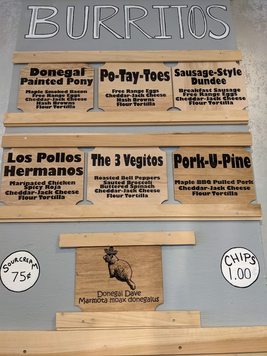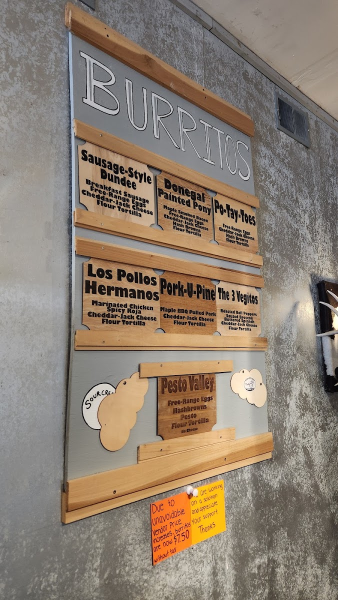 When it comes to food, the menu offers savory options such as the Pesto Valley, Burritos, and HemlockSugarloaf. For something lighter, the 3 Vegitos provides a delicious choice for those seeking a veggie-packed meal.